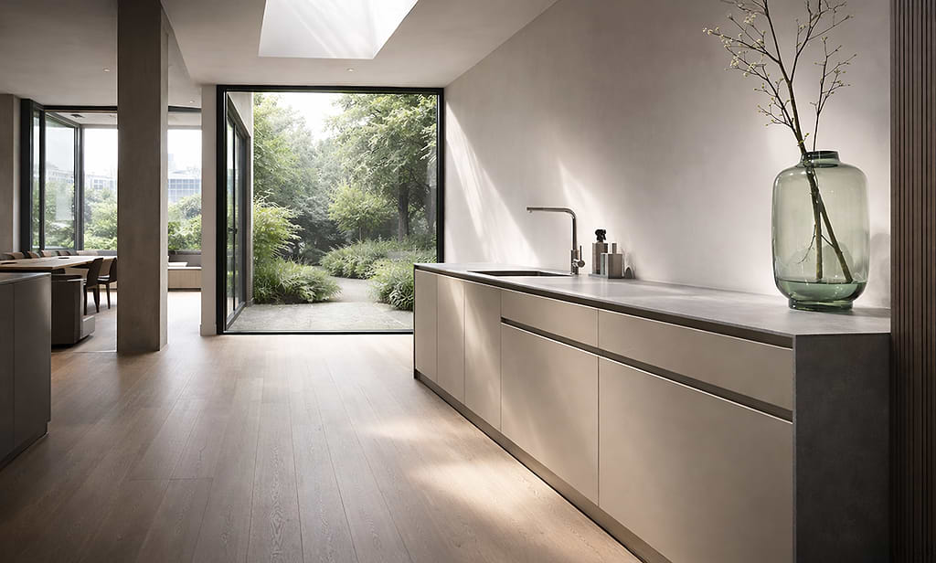 In onze unieke fabrieksshowroom in Cuijk vind je meer dan 40 complete opstellingen. Een inspirerende plek waar materialen, kleuren en indelingen samenkomen tot doordachte ontwerpen.